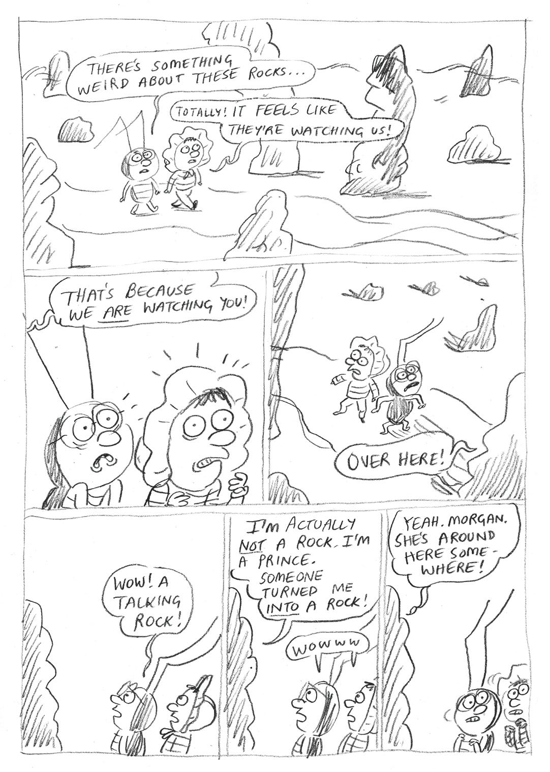 At one stage during the writing, I had a gorgon character I was keen to include. She was a holdover from the first book, where she was called Redusa (like Medusa - weak!) and the idea was that she was a gorgon and a social space invader and it was awkward that you couldn’t make eye contact with her. That never worked, but in this book she came back, now called Morgan (slightly less weak!¡¿) and I tried a section with her and some rocks.