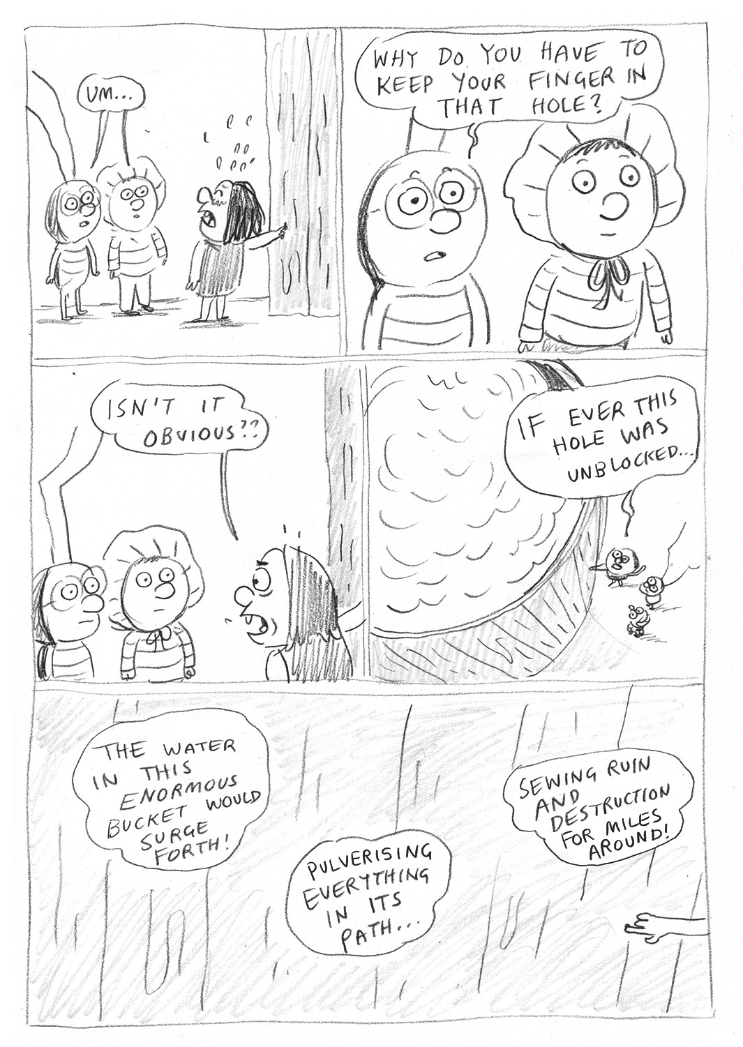I think the solution to this problem was that this cap-wearing character had hands that could freeze water into ice, solving the issue… but not very convincingly. Anyway, Horton Hatches the Egg/Dutch finger-in-dike-boy fans might recognise the general vibe of this one!